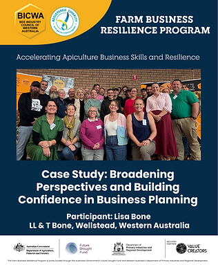 Brought to you by BICWA and delivered by Value Creators, this program empowered beekeepers to build resilience, drive profitability, and embrace innovation. Gain strategic foresight for a sustainable future by developing confidence to navigate change, turning risks into opportunities.